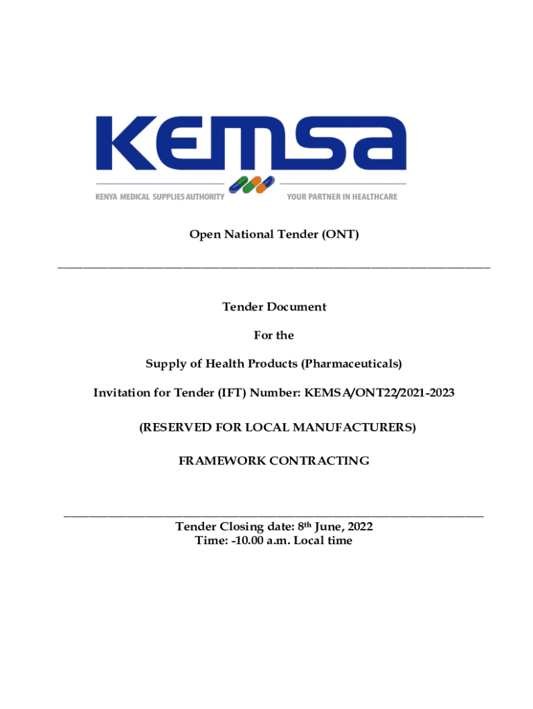 Invitation for Tender (IT) Number: KE MSA/ONT22/20212023