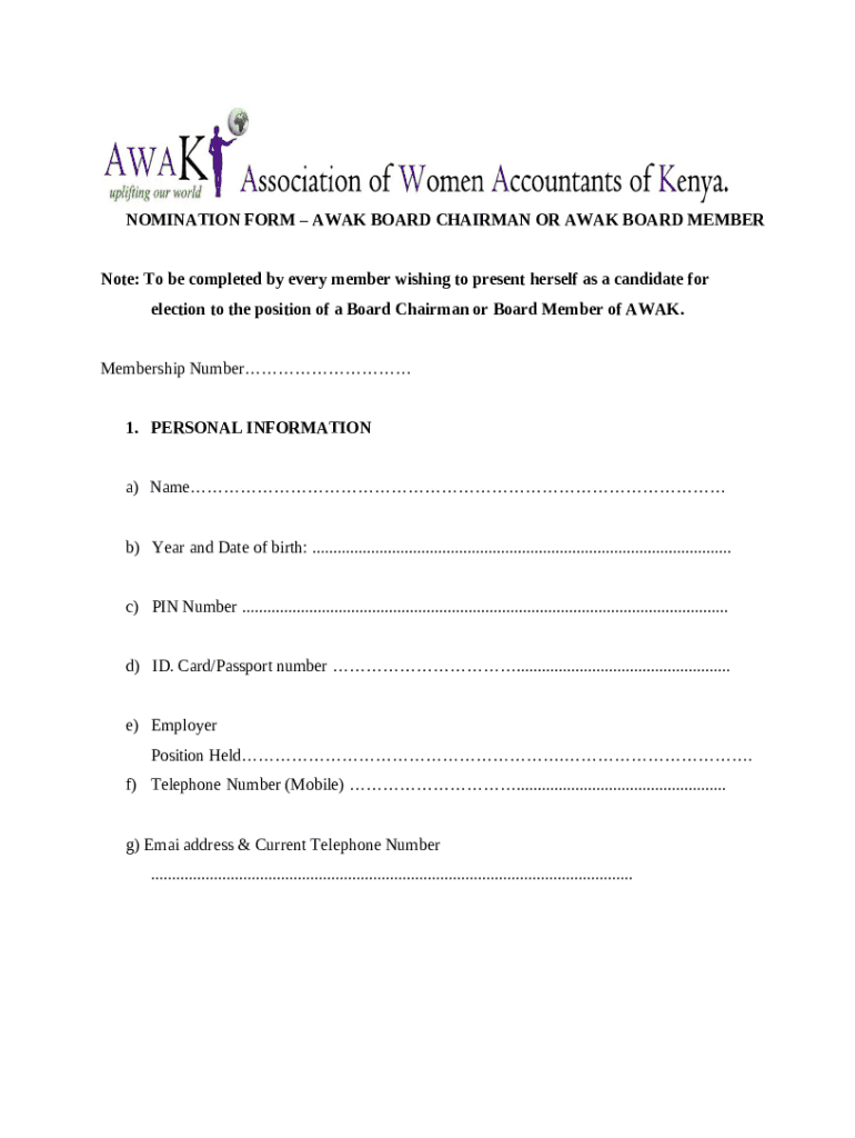 Instructions for the NOMINATION AWAK BOARD MEMBER- 2021-F form