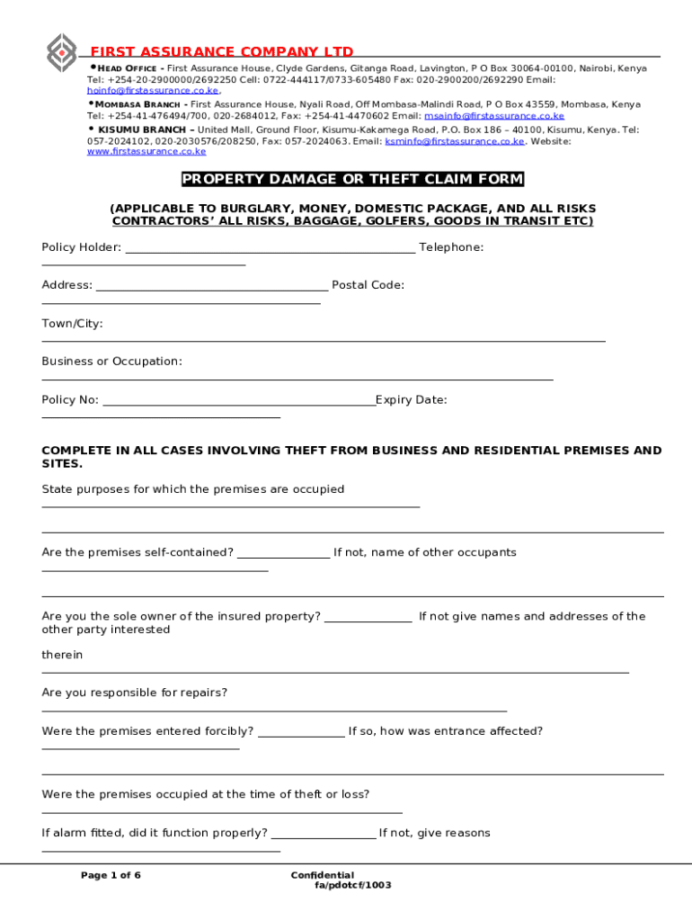 What is First-Assurance-property-Damage-Or-Theft-Claim-.doc Form?