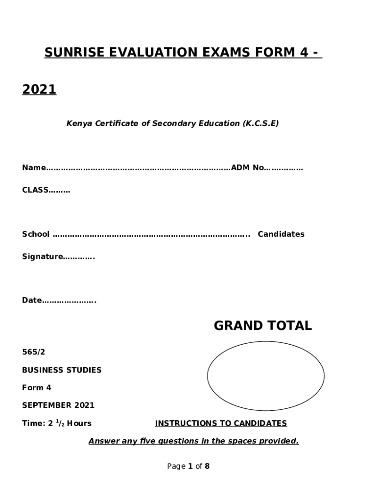 What is sunrise evaluation exams 4 - 2021 Form?