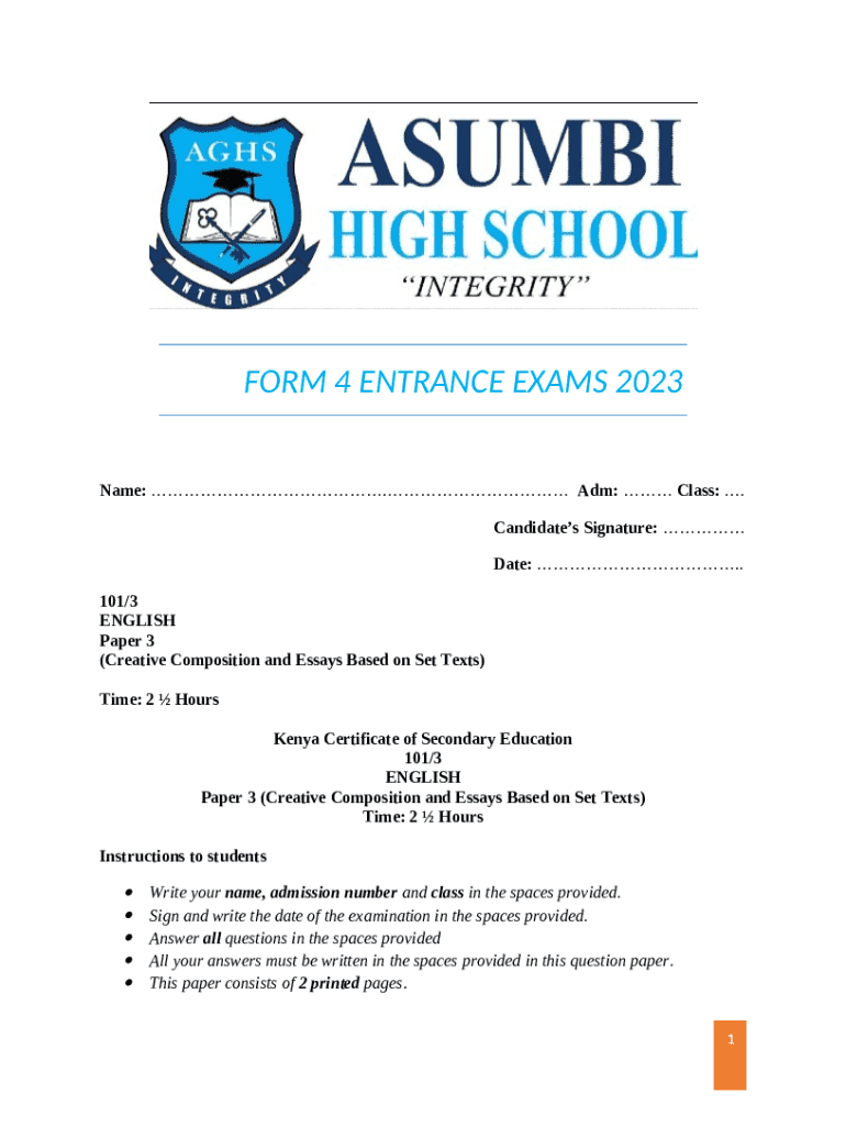 Instructions for the form ENGLISHPaper 3 CREATIVE COMPOSITION & ESSAYS ...