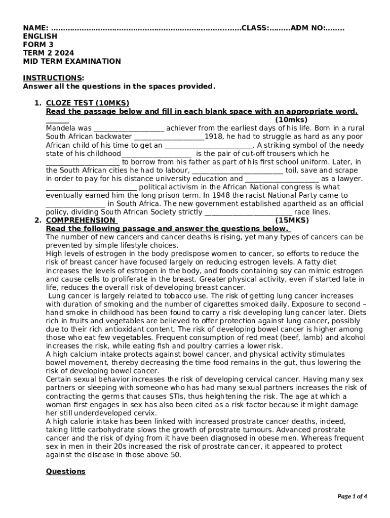 What is English Questions and Answers - 2 Term 1 Mid ... Form?