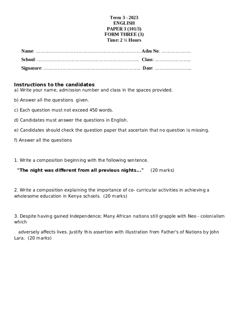 The 3 end year exam - the quality assuarance series 2023 is a Word document that should be submitted to the specific address to provide certain info. It has to be completed and signed, which can be done in hard copy, or via a certain software such as PDFfiller. It lets you complete any PDF or Word document right in the web, customize it according to your requirements and put a legally-binding electronic signature. Once after completion, the user can send the 3 end year exam - the quality assuarance series 2023 to the appropriate individual, or multiple individuals via email or fax. The blank is printable too because of PDFfiller feature and options presented for printing out adjustment. Both in digital and physical appearance, your form will have a neat and professional look. You can also save it as the template to use later, without creating a new file from scratch. All you need to do is to customize the ready document.