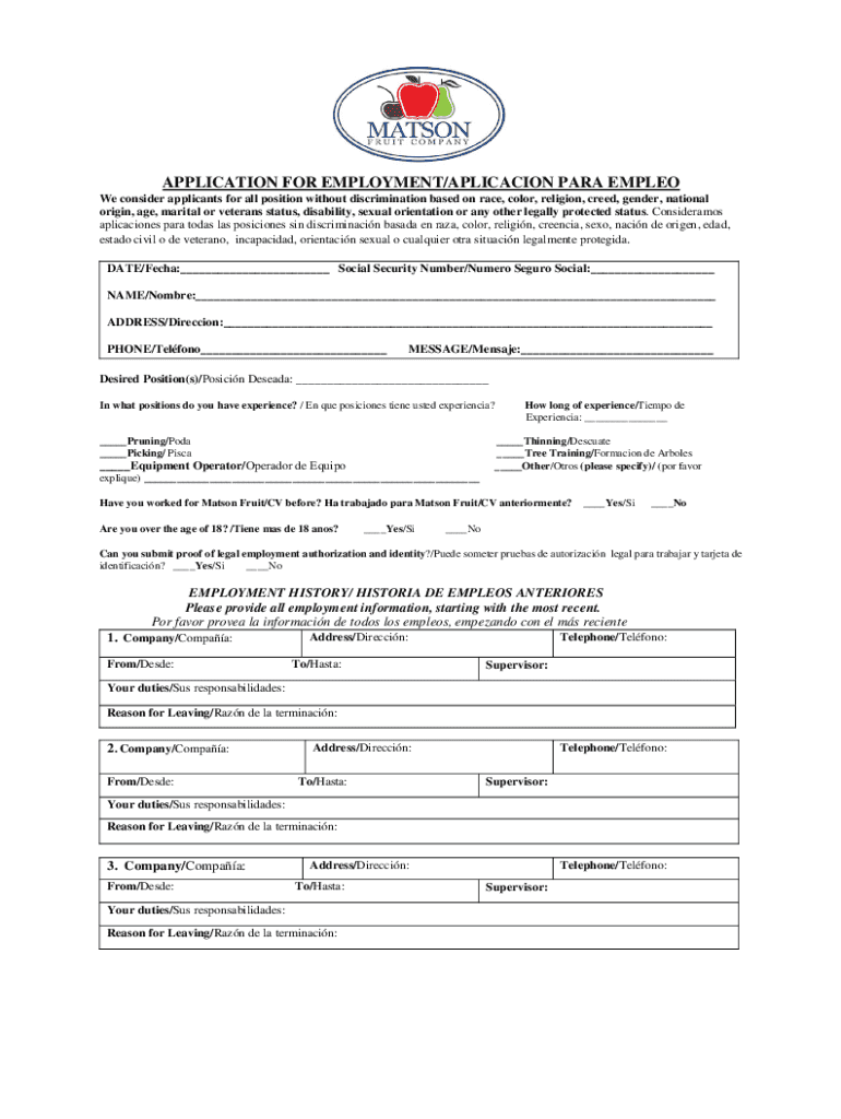 Obtener el gratis APPLICATION FOR EMPLOYMENT/APLICACION PARA ...