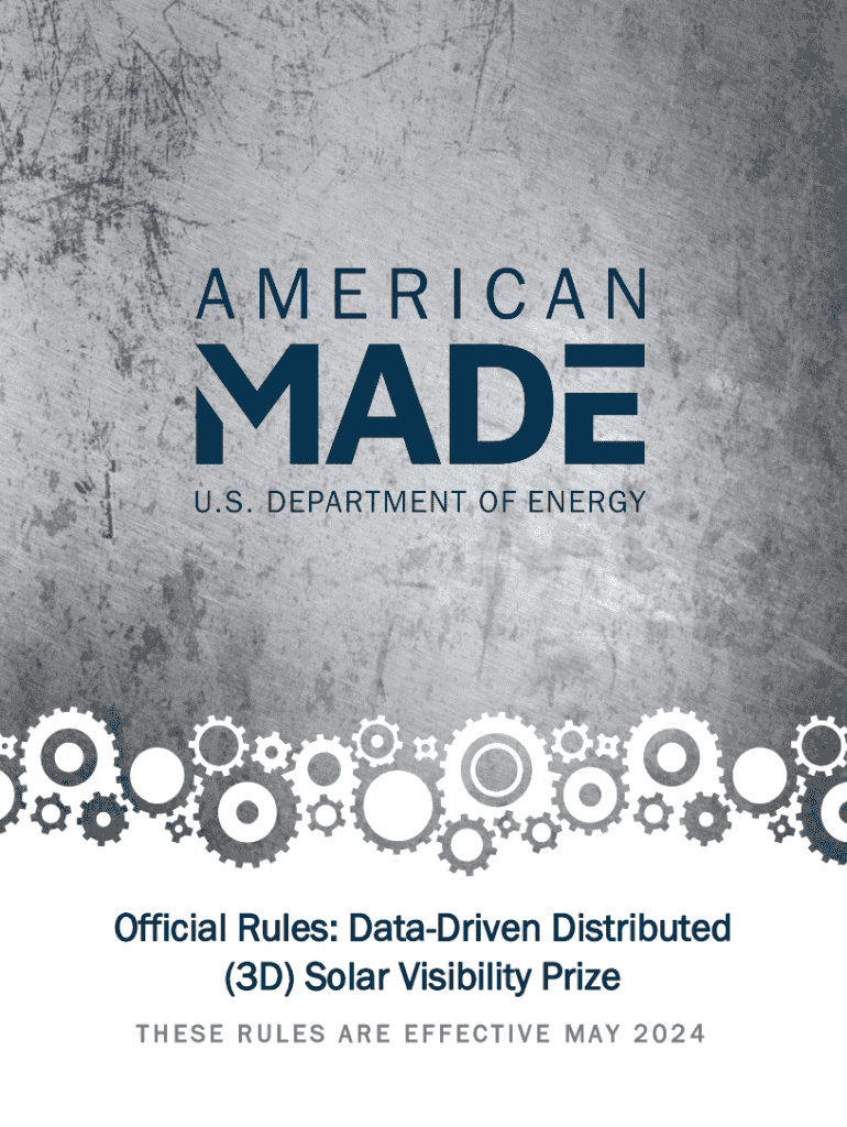 Official Rules: DataDriven Distributed (3D) Solar Visibility Prize THESE RULES ARE EFFECTIVE MAY 2024Preface The U.S. Department of Energys AmericanMade DataDriven Distributed (3D) Solar Visibility