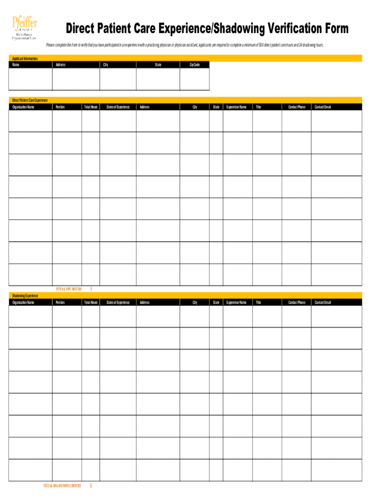 Please complete this form to verify that you have participated in an experience with a practicing physician or physician assistant. Applicants