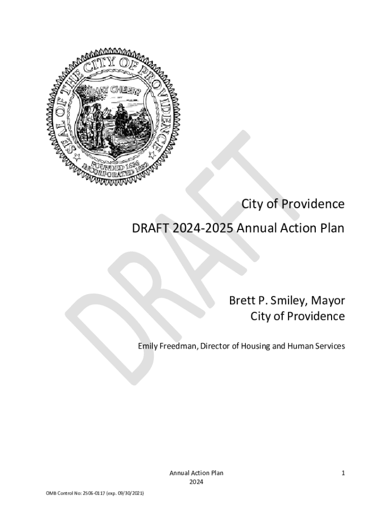 City of Providence DRAFT 20242025 Annual Action Plan Brett P. Smiley, Mayor City of Providence Emily Freedman, Director of Housing and Human ServicesAnnual Action Plan 2024 OMB Control No: 25060117