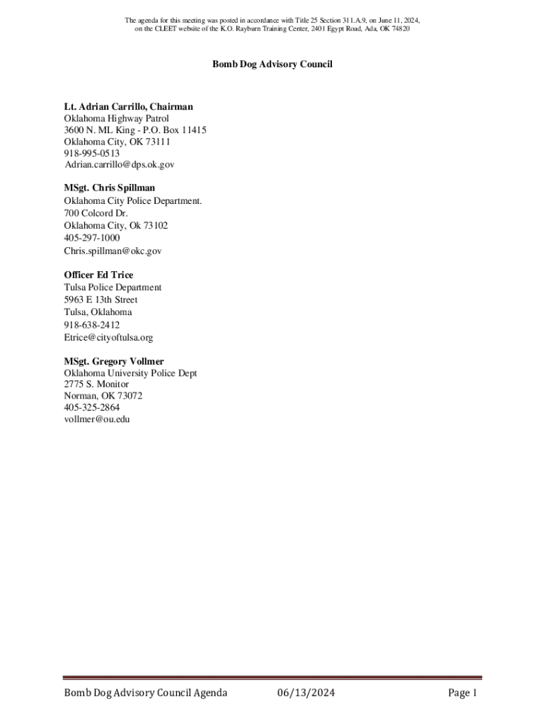 Get the free Drug Dog Advisory Council Agenda 06/13/2024 Page 1