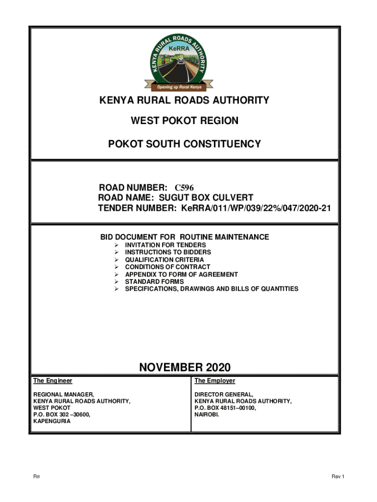 Get the free KENYA RURAL ROADS AUTHORITY TENDER FOR ...