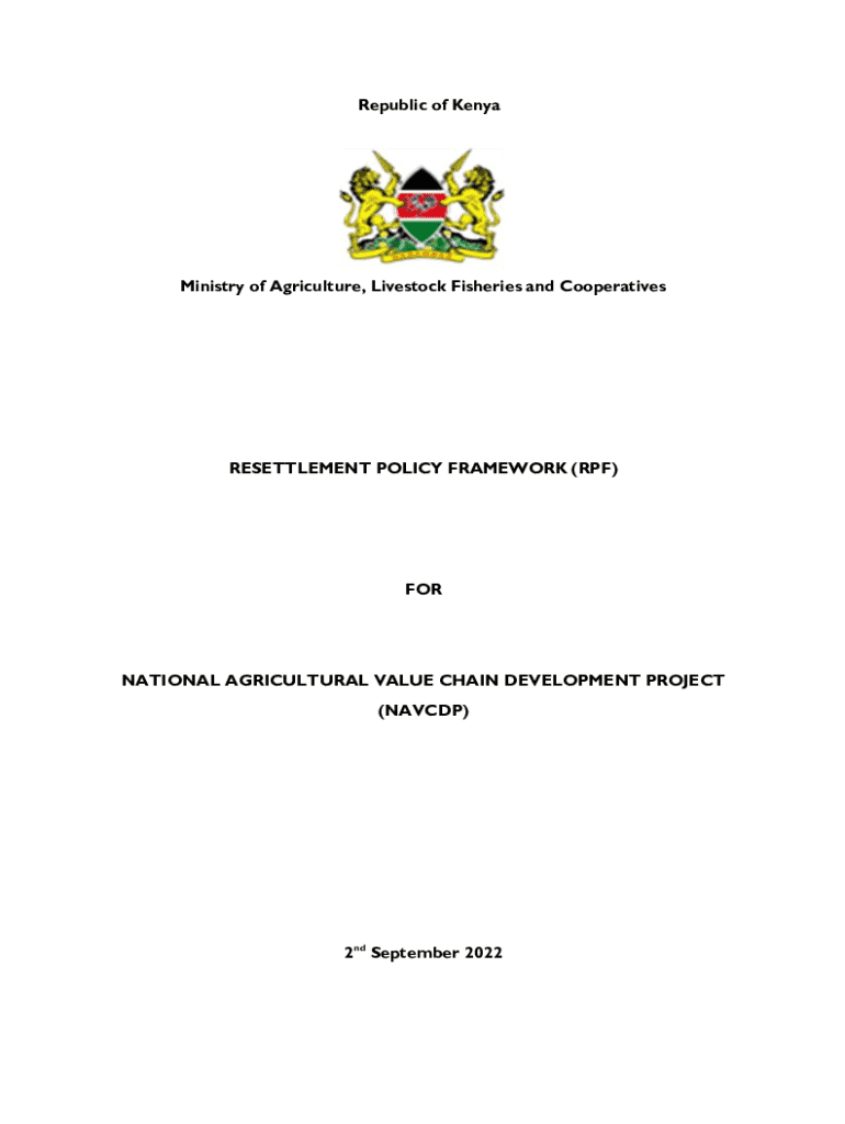 Republic of KenyaMinistry of Agriculture, Livestock Fisheries and CooperativesRESETTLEMENT POLICY FRAMEWORK (RPF)FOUNDATIONAL AGRICULTURAL VALUE CHAIN DEVELOPMENT PROJECT