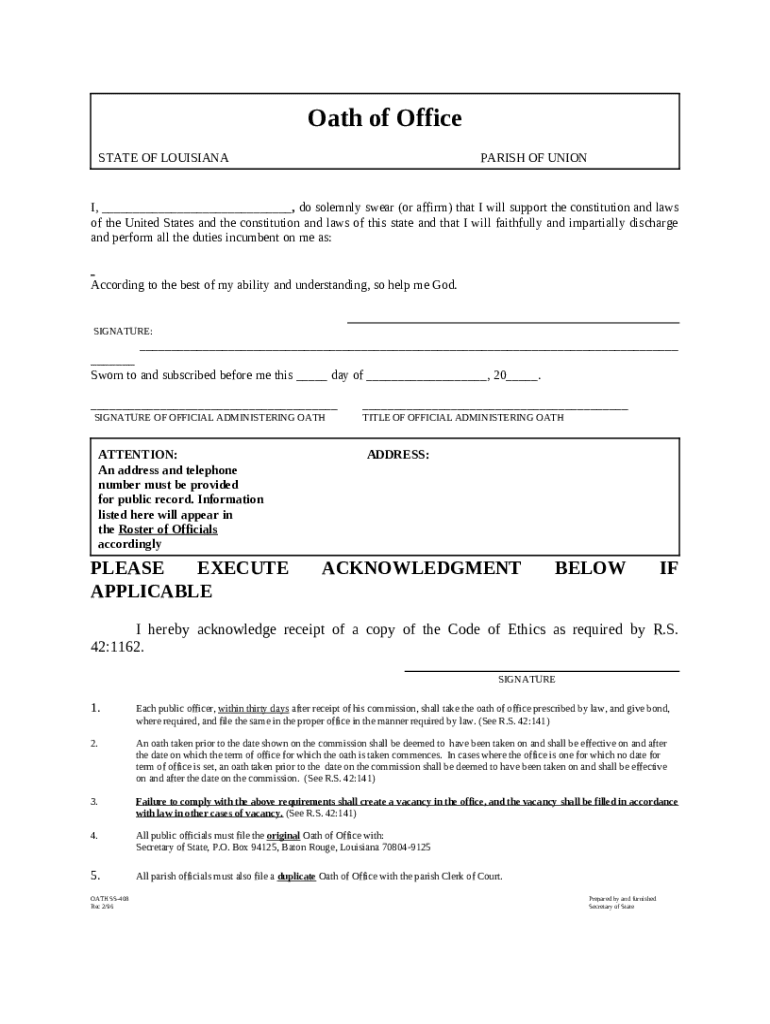 What is Oath of Office Historical Guide to Moral Leadership. ... Form?