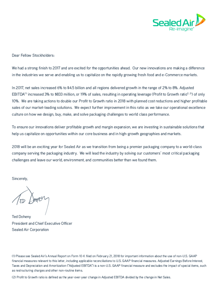 Dear Fellow Stockholders: We had a strong finish to 2017 and are excited for the opportunities ahead. Our new innovations are making a difference in the industries we serve and enabling us to capitalize