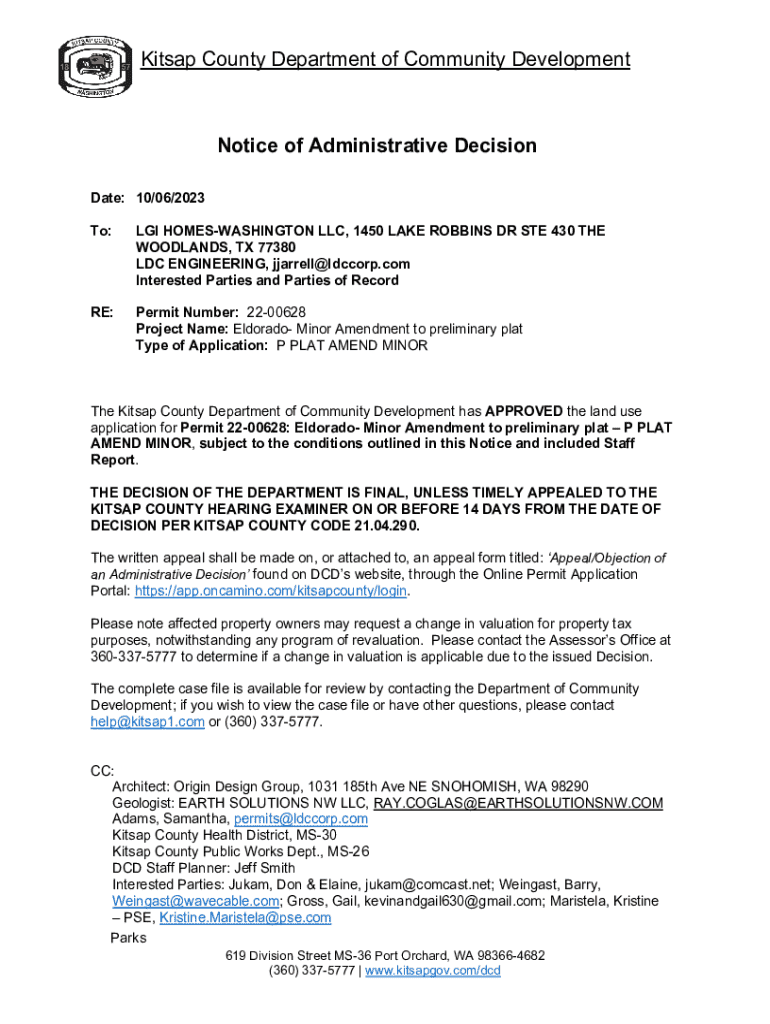 Kitsap County Department of Community DevelopmentNotice of Administrative Decision
