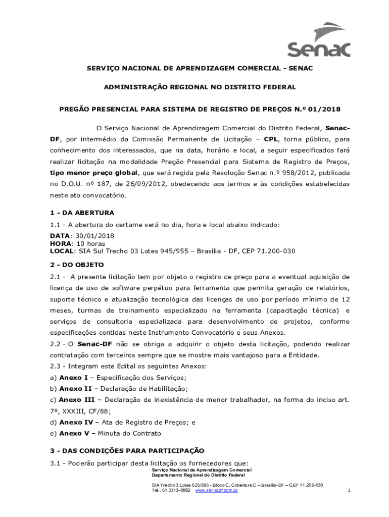 Obtenha o gratuito SENAC/DF AVISO DE PRORROGAO SI
