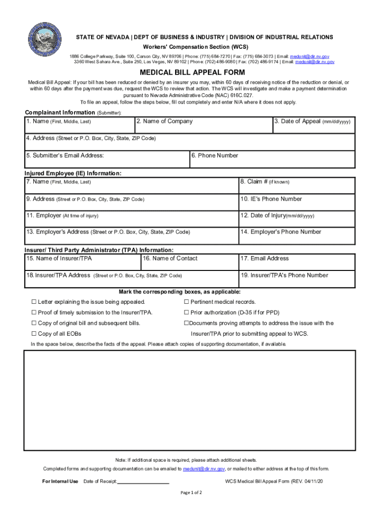 STATE OF NEVADA | DEPT OF BUSINESS & INDUSTRY | DIVISION OF INDUSTRIAL RELATIONS Workers\' Compensation Section (WCS) 1886 College Parkway, Suite 100, Carson City, NV 89706 | Phone: (775) 6847270