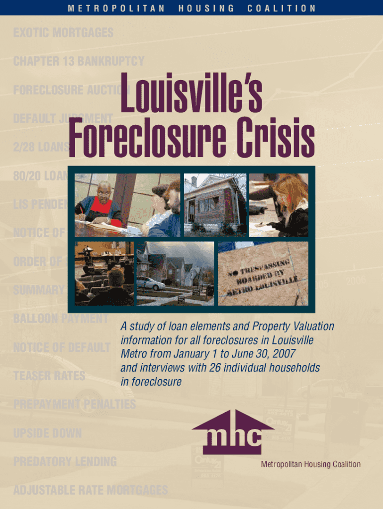 M E T R O P O L I TA NH O U S I N GC O A L I T I ON EXOTIC MORTGAGES CHAPTER 13 BANKRUPTCYLouisvilles Foreclosure CrisisFORECLOSURE AUCTION DEFAULT JUDGMENT 2/28 LOANS80/20 LOANS IS PENDENT NOTICE