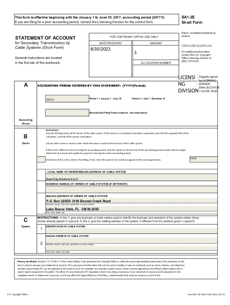 This form is effective beginning with the January 1 to June 30, 2017, accounting period (2017/1) If you are filing for a prior accounting period, contact the Licensing Division for the correct form.