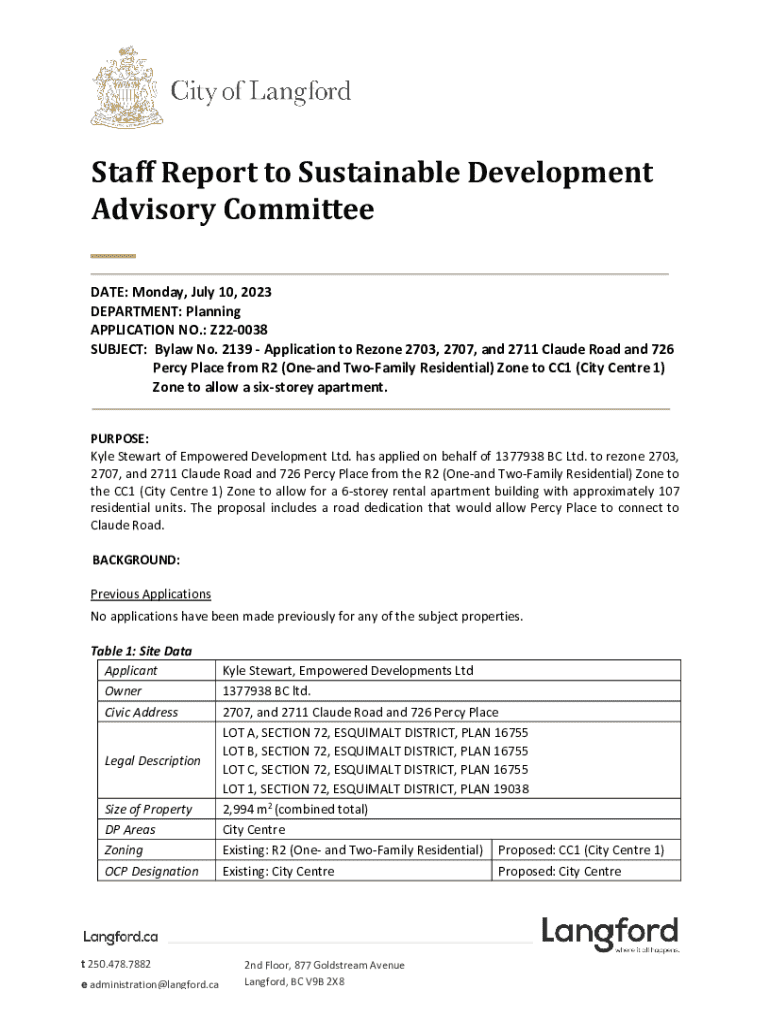 Staff Report to Sustainable Development Advisory Committee DATE: Monday, July 10, 2023, DEPARTMENT: Planning APPLICATION NO.: Z220038 SUBJECT: Bylaw No. 2139 Application to Rezone 2703, 2707, and
