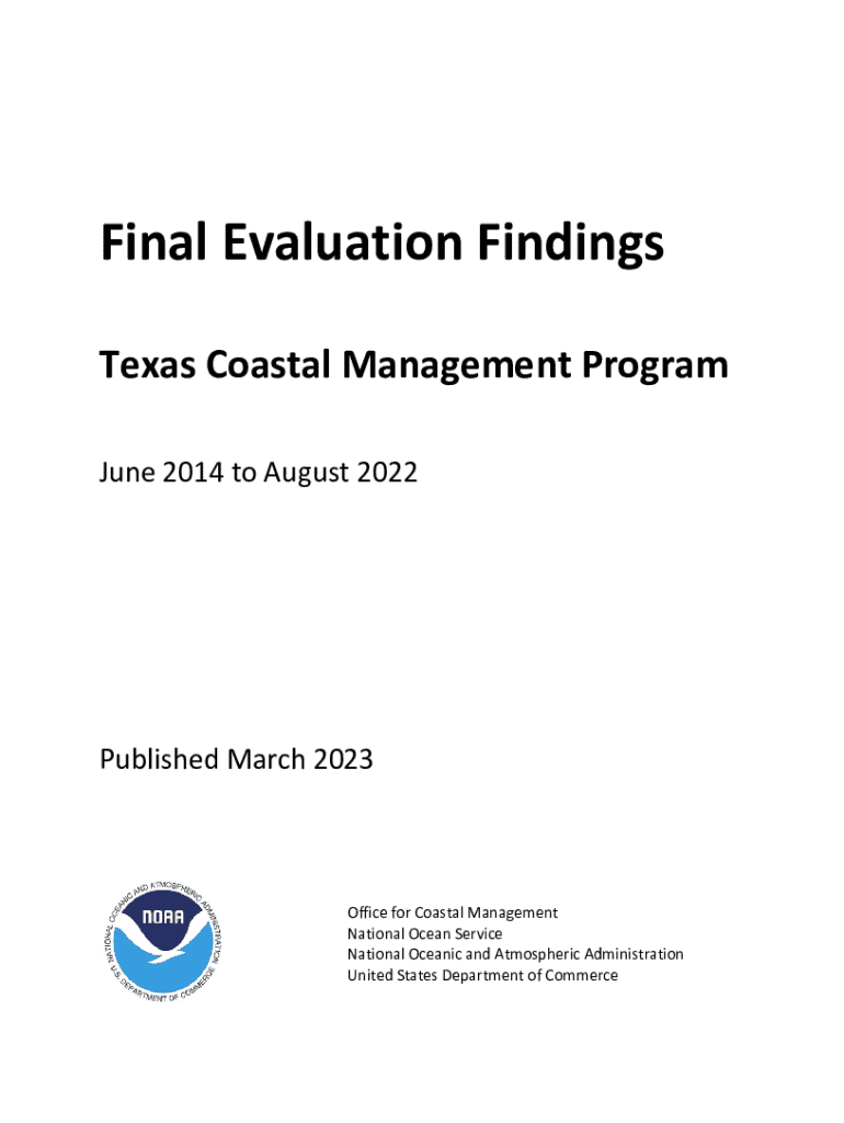 Final Evaluation Findings Texas Coastal Management Program June 2014 to August 2022Published March 2023Office for Coastal Management National Ocean Service National Oceanic and Atmospheric Administration