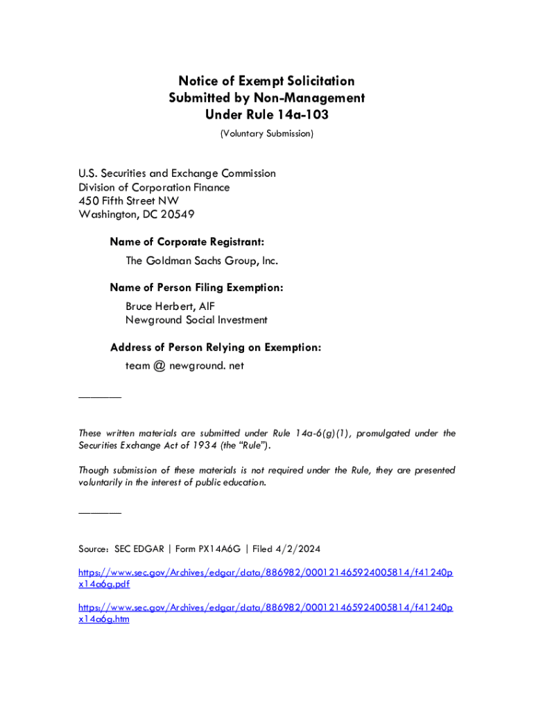 Get the free Notice of Exempt Solicitation Submitted by Non- ...