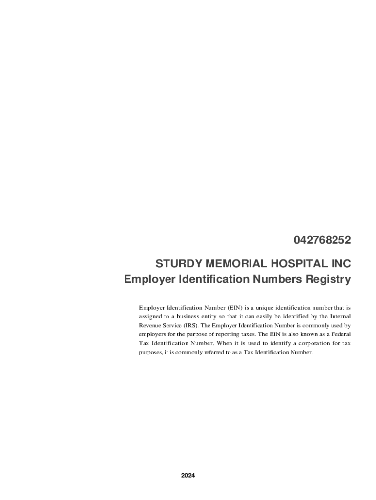 Get the free ein/tax id : 042768252 : sturdy memorial hospital inc