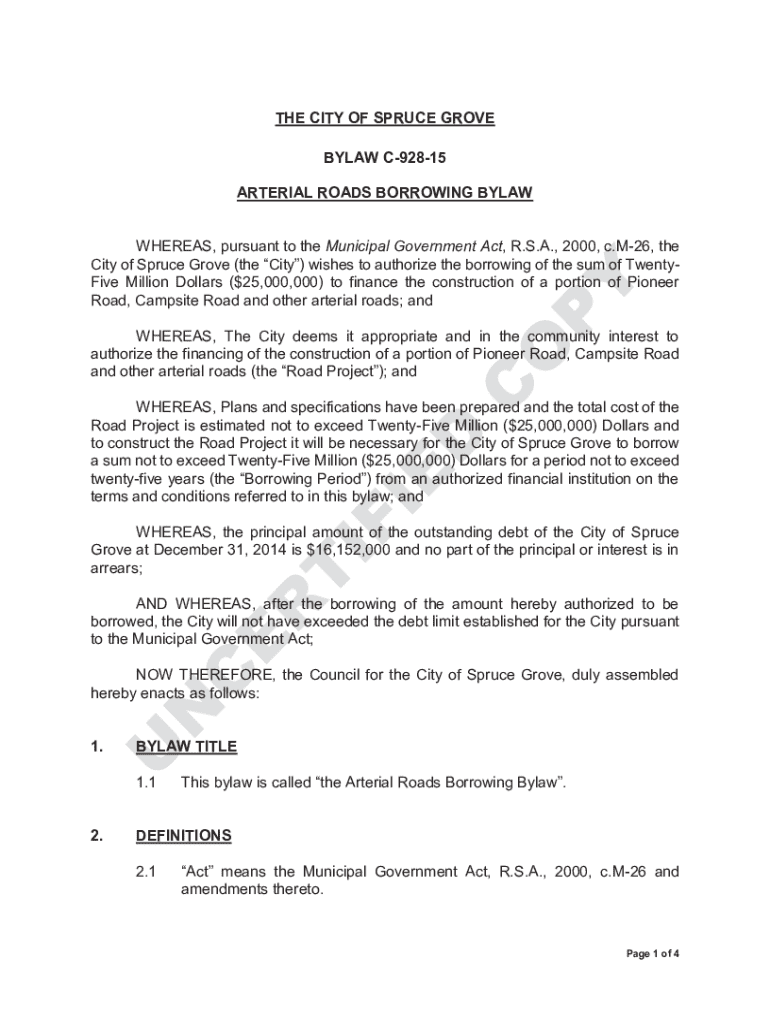 Get the free Bylaw C-928-16 - Arterial Roads Borrowing Bylaw