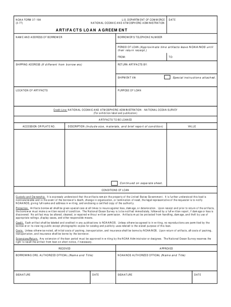 Get the free NOAA Form 37-19A NOAA Corporate Services. Artifacts Loan Agreement
