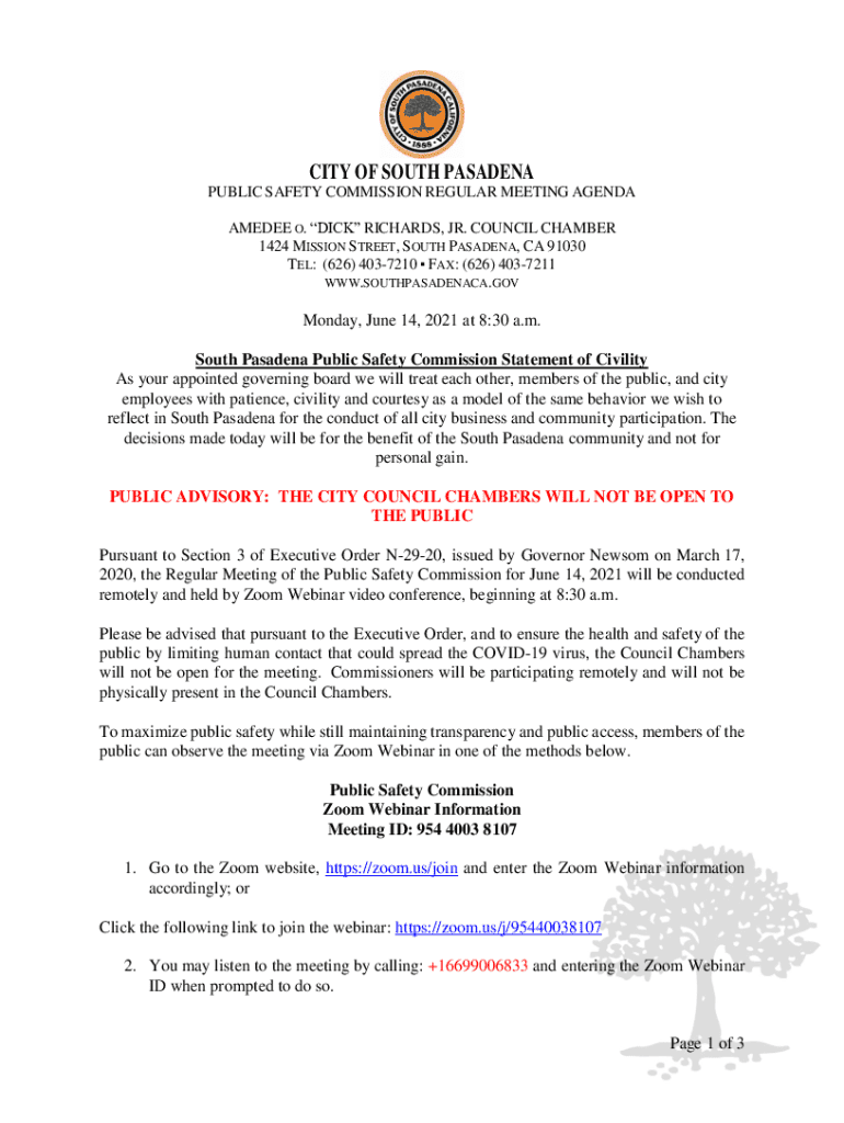 Get the free Public Safety Commission Statement of Civility