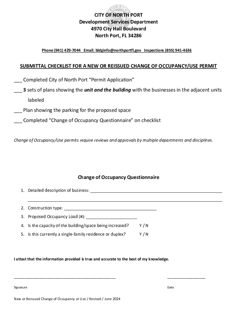 CITY OF NORTH PORT Development Services Department 4970 City Hall Boulevard North Port, FL 34286 Phone (941) 4297044 Email: bldginfo@northportfl.gov Inspections (855) 9414636SUBMITTAL CHECKLIST FOR