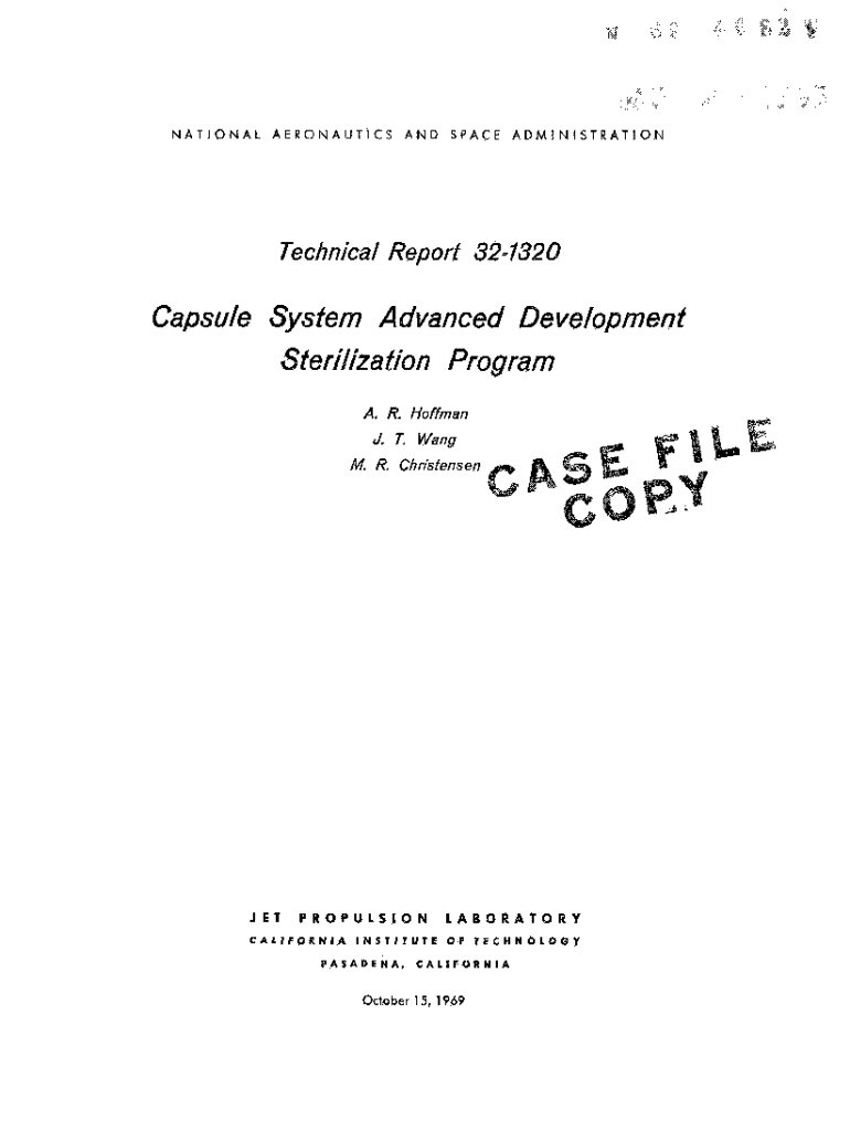 N A T I O N A L A E R O N A U T I C S A N D SPACE A D M I N I S T R A T I ON Technical Report 321320Capsule System Advanced Development Sterilization Program A. R. Hoffman J. T. Wang. R. ChristensenJETPROPULSIONLABORATORYC