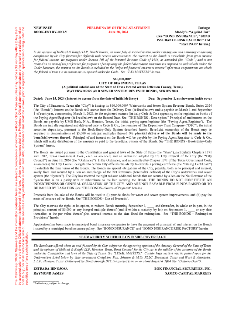 This Preliminary Official Statement and the information contained herein are subject to completion or amendment without notice. These securities may not be sold, nor may offers to buy them be accepted,