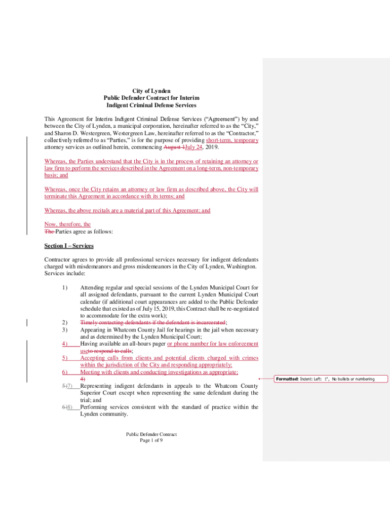 City of Lyndon Public Defender Contract for Interim Indigent Criminal Defense Services This Agreement for Interim Indigent Criminal Defense Services (Agreement) by and between the City of Lyndon,