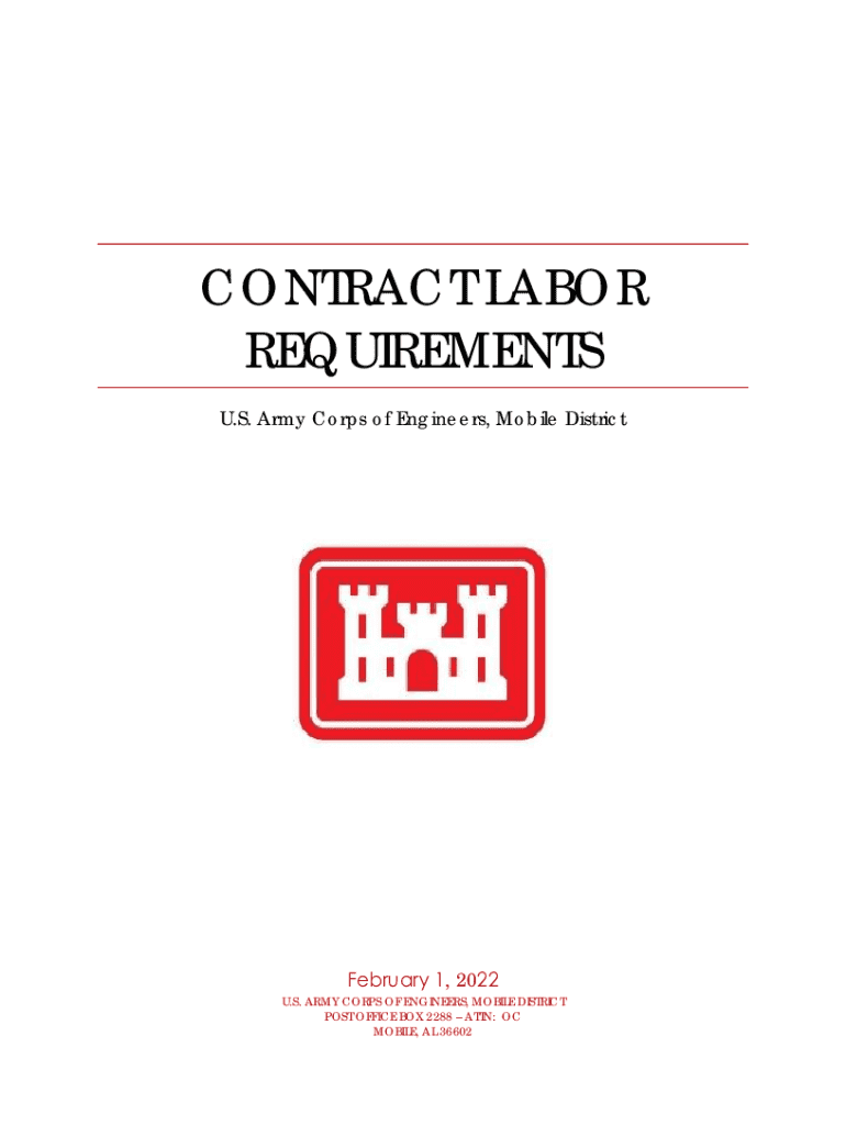 CONTRACT LABOR REQUIREMENTS U.S. Army Corps of Engineers, Mobile District February 1, 20220U. S. ARMY CORPS OF ENGINEERS, MOBILE DISTRICT POST OFFICE BOX 2288 ATTN: OC MOBILE, AL 36602February 2022Mobile