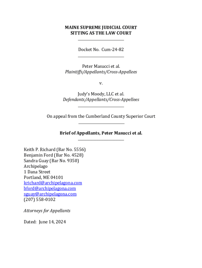 MAINE SUPREME JUDICIAL COURT SITTING AS THE LAW COURT ___ Docket No. Cum2482 ___ Peter Mascot et al. Plaintiffs/Appellants/CrossAppellees v. Judy's Moody, LLC et al. Defendants/Appellants/CrossAppellees
