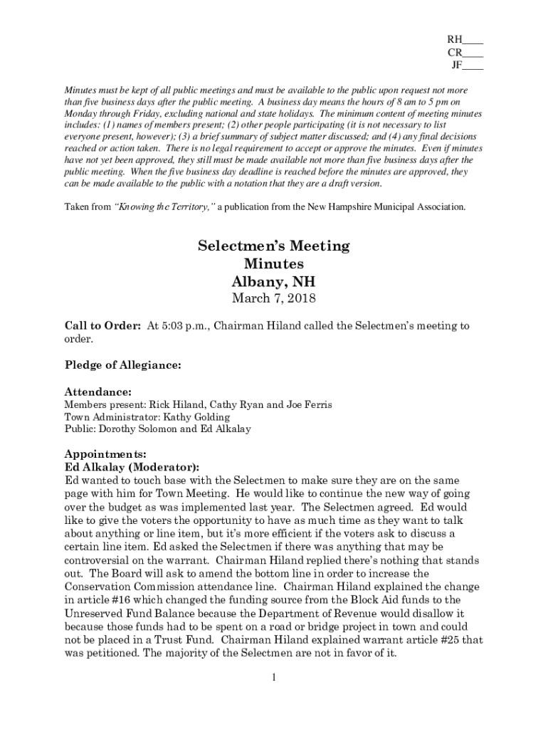 RH___ CR___ OF___ Minutes must be kept of all public meetings and must be available to the public upon request not more than five business days after the public meeting. A business day means the hours