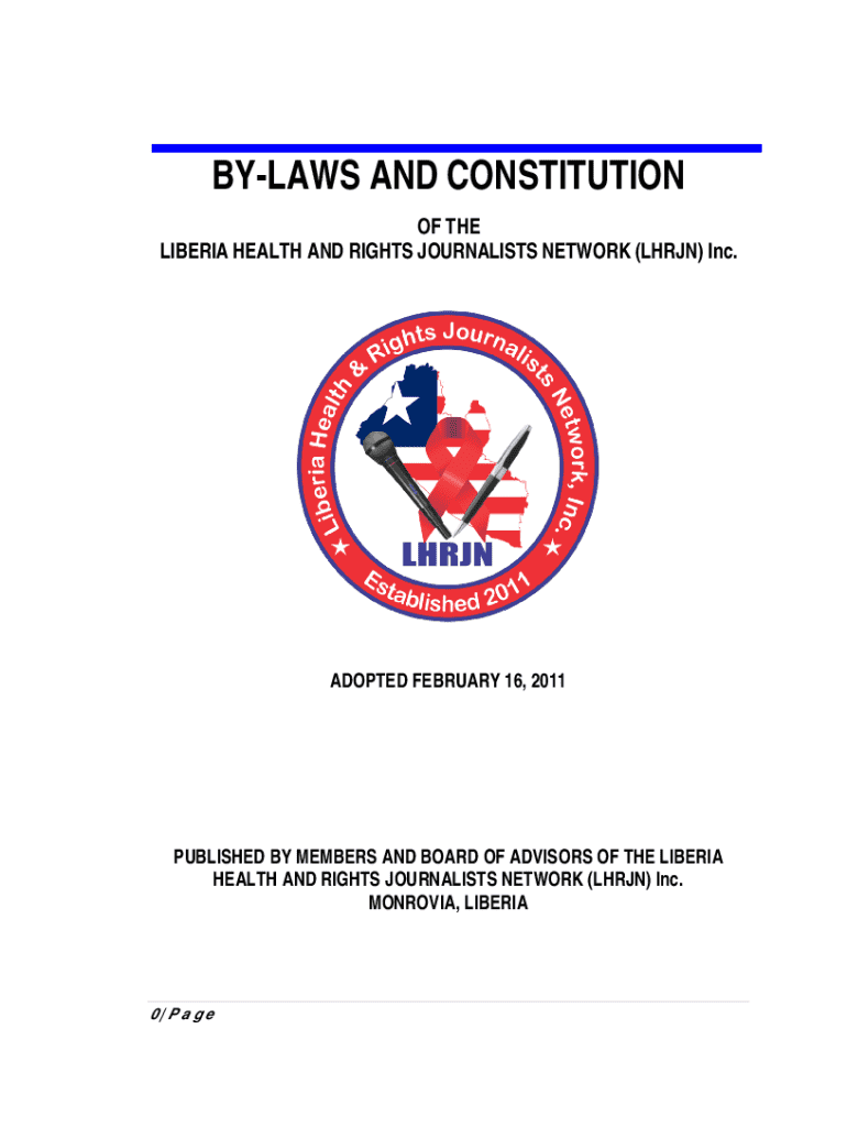 BYLAWS AND CONSTITUTION OF THE LIBERIA HEALTH AND RIGHTS JOURNALISTS NETWORK (LOREN) Inc. ADOPTED FEBRUARY 16, 2011PUBLISHED BY MEMBERS AND BOARD OF ADVISORS OF THE LIBERIA HEALTH AND RIGHTS JOURNALISTS