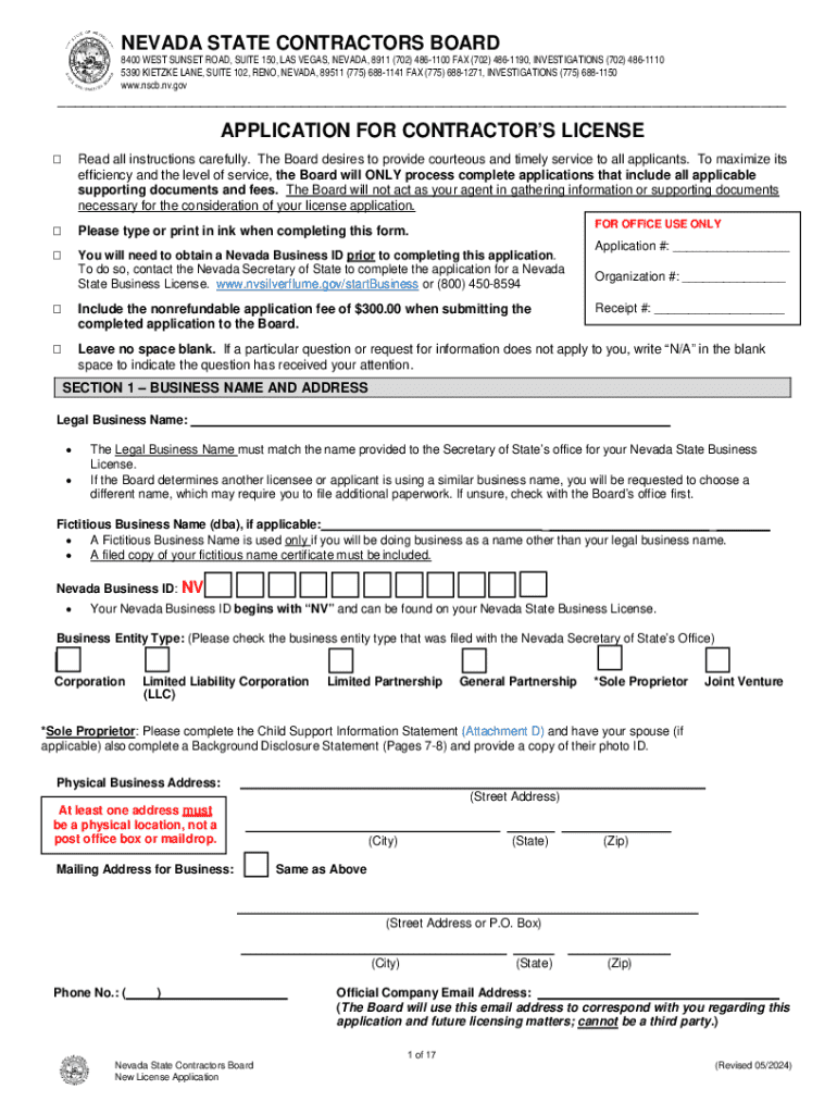 Contractors can fill out the Nevada state contractors board measure form online or by mail with their financial information.