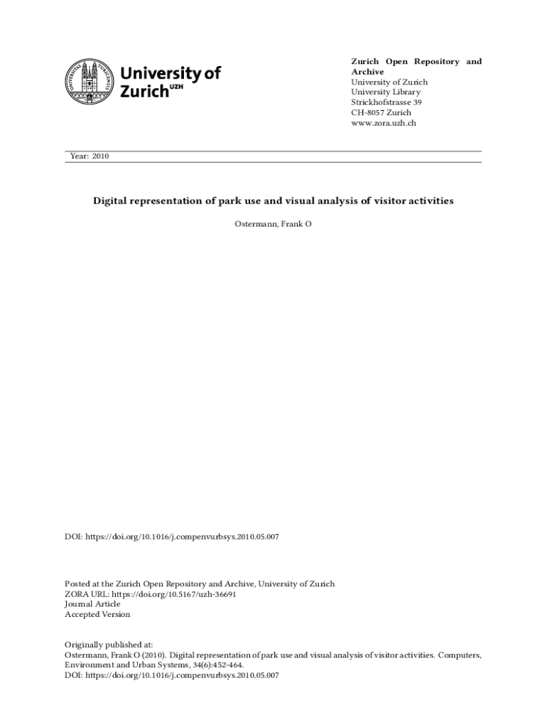 Zurich Open Repository and Archive University of Zurich University Library Strickhofstrasse 39 CH8057 Zurich www.zora.uzh.ch Year: 2010Digital representation of park use and visual analysis of visitor