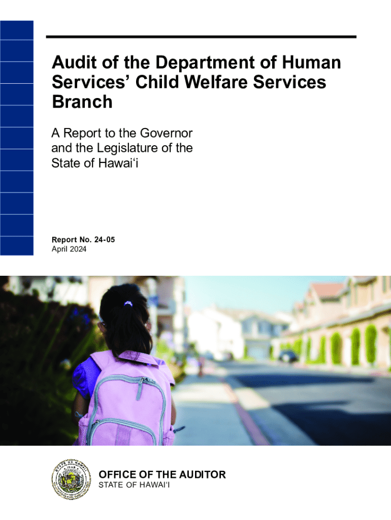 Audit of the Department of Human Services Child Welfare Services Branch A Report to the Governor and the Legislature of the State of HawaiiReport No. 2405 April 2024OFFICE OF THE AUDITOR STATE OF
