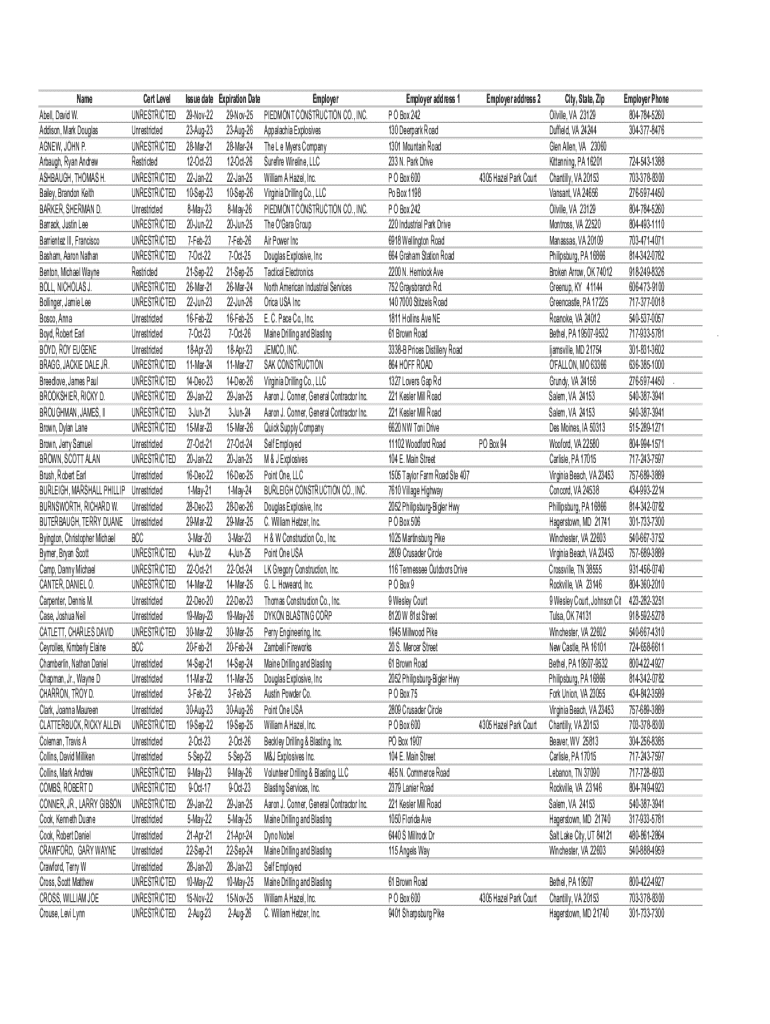 Name Bell, David W. Addison, Mark Douglas AGNEW, JOHN P. Rough, Ryan Andrew LIMBAUGH, THOMAS H. Bailey, Brandon Keith BARKER, SHERMAN D. Barrack, Justin Lee Barrister III, Francisco Ba sham, Aaron