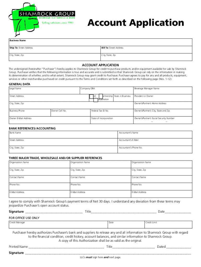 Account Application Business Name Ship To: Street AddressBill To: Street AddressCity, State, ZipCity, State, ZipACCOUNT APPLICATION The undersigned (hereinafter Purchaser) hereby applies to Shamrock