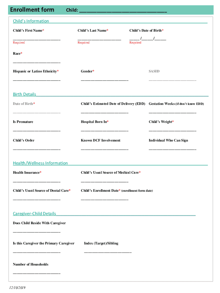 Enrollment orchid: ___Child's Information