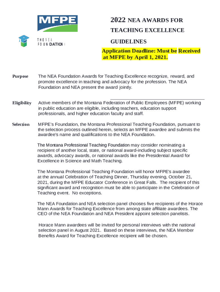 What is NEA AWARDS FOR TEACHING EXCELLENCE ... Form?
