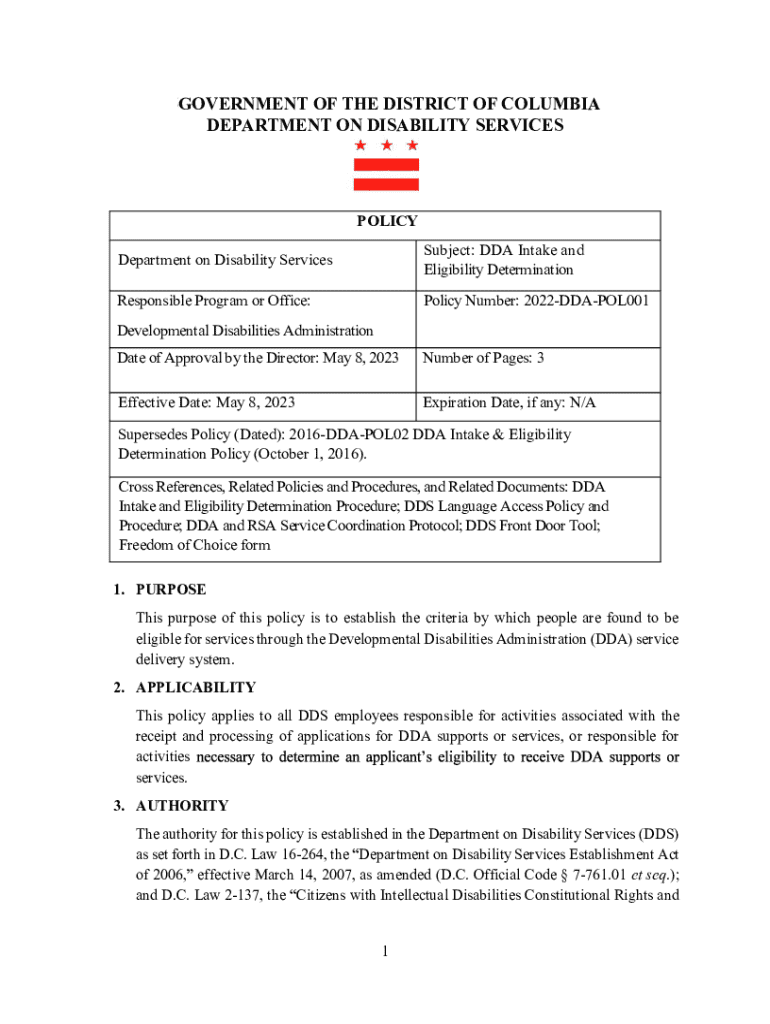 Get the free Eligibility for DC Services - dds dc