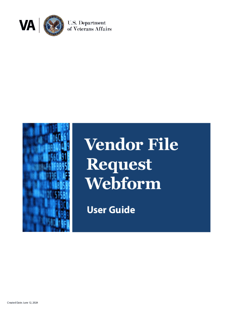 Vendor File Request Web form User GuideCreated Date: June 12, 2024Introduction To receive a payment or benefit, vendors must add themselves to the VA financial system by completing a vendor file form,