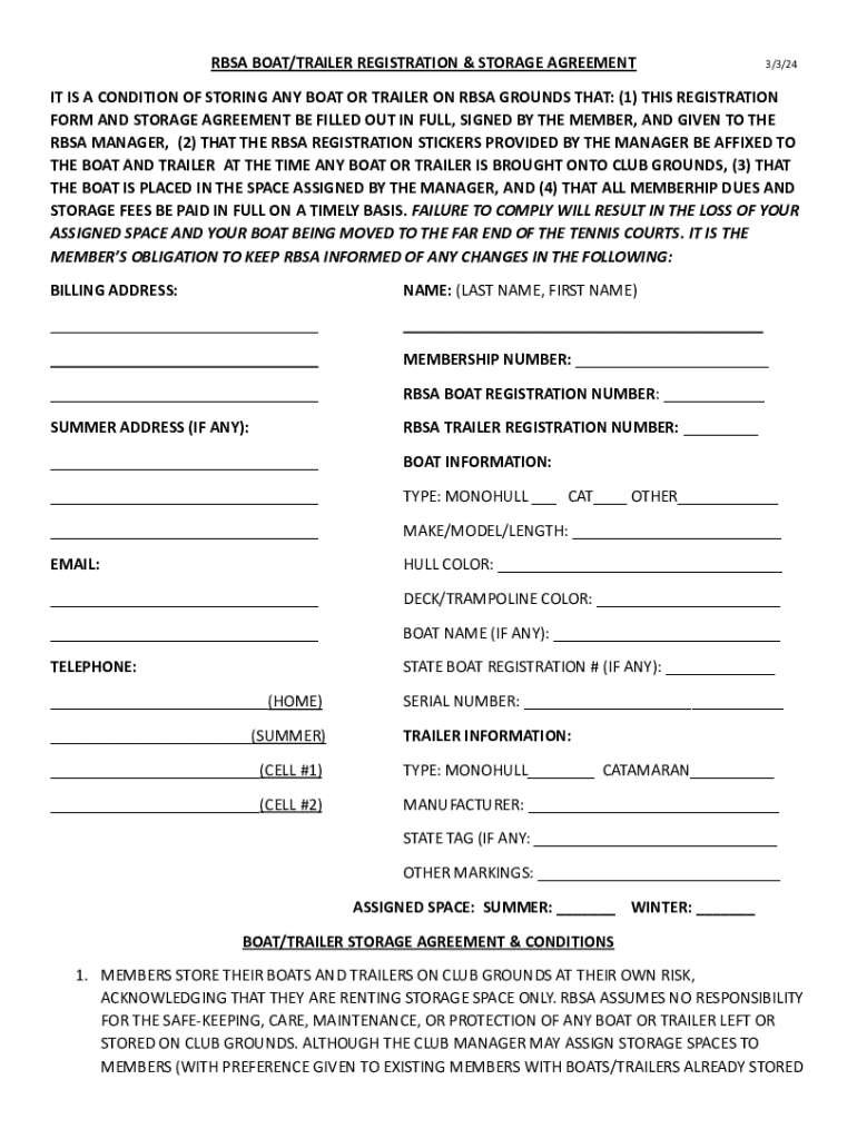 Get the free rbsa boat/trailer registration & storage agreement