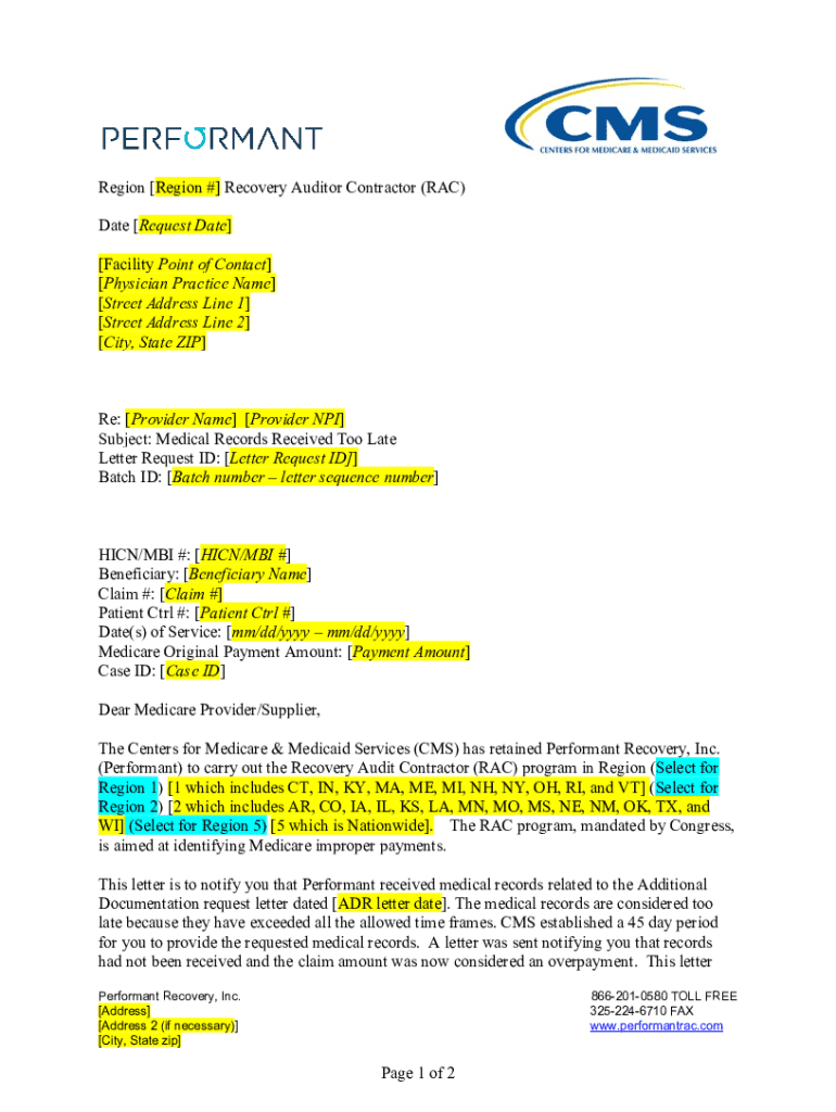 Region [Region #] Recovery Auditor Contractor (RAC) Date [Request Date] [Facility Point of Contact] [Physician Practice Name] [Street Address Line 1] [Street Address Line 2] [City, State ZIP’Re: