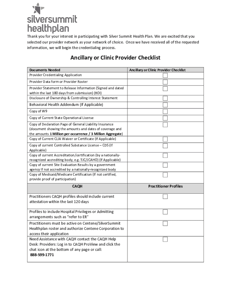 Thank you for your interest in participating with Silver Summit Health Plan. We are excited that you selected our provider network as your network of choice. Once we have received all the requested