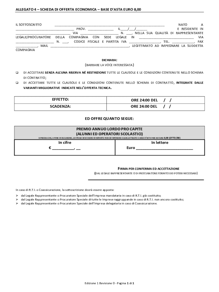ALLEGATION 4 SCHEMA DI OFFER TA ECONOMICA BASE DATA EURO 8,00IL SOTTOSCRITTO