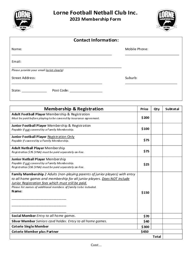 Fill out your lorne football netball club online with pdfFiller!